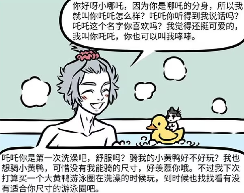迷你哪吒是哪吒的分身,是以哮天还给它取名为吒吒。岂论迷你哪吒是否有恢复,哮天齐一直束缚讲话。不仅如斯,哮天还带陶醉你哪吒陶醉,给他准备小黄鸭,还要给他准备带游水圈的大黄鸭。