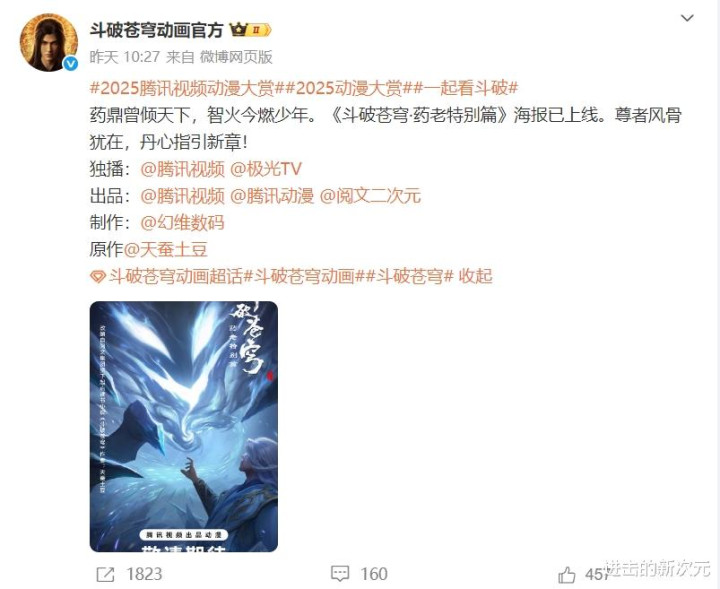 慑服许多东谈主都还铭刻,在客岁的鹅厂动漫节的时候,斗破天穹动画官宣要作念药老戏院版,其他年番也晓示制作新戏院版,像仙逆动画第一部戏院版神临之战,神印王座动画第一部戏院版伊莱克斯传,以及斗罗大陆动画戏院版剑谈尘心,它们四大戏院版全是合并时代晓示的企划,那时亦然引起了不小的颠簸。