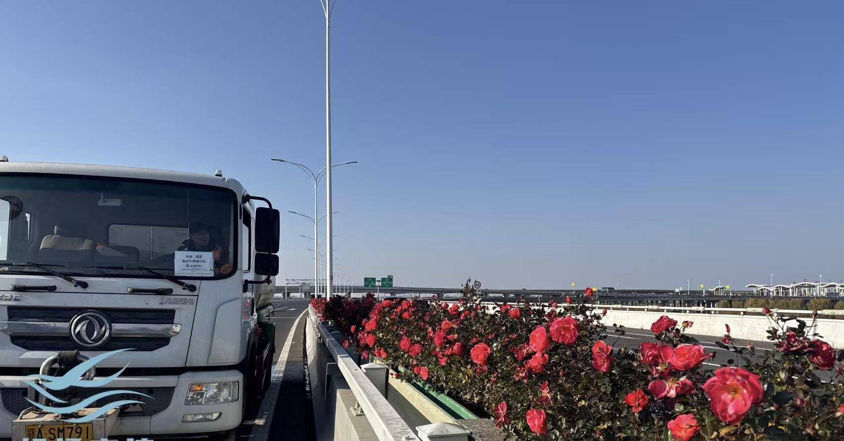 如果你这两天途经机场二通谈,路中终止带上的玫红粉红大红月季花密集绽放,开成了月季花瀑。