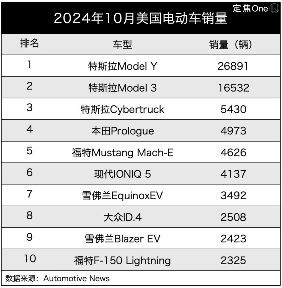 本田的纯电车型也在积极应变,到2024年10月,纯电动车型本田Prologue参加好意思国电动汽车销量前十。