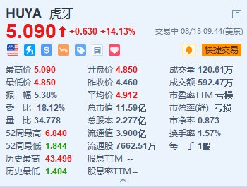 虎牙(HUYA.US)涨超14%,报5.09好意思元。音书面上,虎牙第二季度总收入达15.4亿元,其中,来自游戏联系做事、告白和其他业务的收入同比增长152.7%至3.1亿元;GAAP准则下包摄于虎牙公司的净利润约为2960万元,同比增长46%。虎牙直播迁徙端月均活跃用户数增至8350万。虎牙书记延迟股票回购打算及十分股息披发;可能回购高达1亿好意思元的ADS或闲居股,书记每股闲居股派发十分现款股息1.08好意思元。