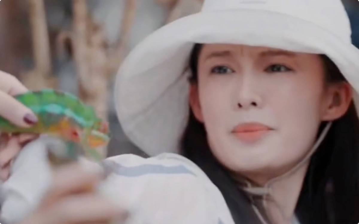 在动物园近距离碰见变色龙时,李沁被吓得惊恐面庞,心跳没稳。