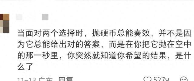 最近看到一个卓著专诚念念的话题,有东说念主问,大家合计《爱情公寓》里,最封神的一句台词是什么?这引起了大家的强烈商讨,不得不说,经典便是经典,内部的台词真实皆好专诚旨。 底下这句台词,其时看到的时代真实是大受轰动。敬佩好多东说念主皆有拿不定观念,置硬币作念决定的时代,阿谁时代咱们皆想着,把遴荐权交给庆幸。关联词当把硬币抛到半空的那一刻,你心里实在想要的谜底,其实依然出现了啊!