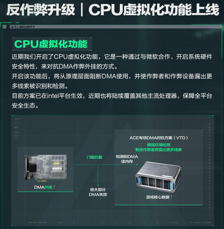 据了解,该本领对于DMA的阻断和打击上有着显耀恶果,目下业内好多FPS游戏齐在跟进或者准备跟进这一本领,从旨趣层打击外挂。