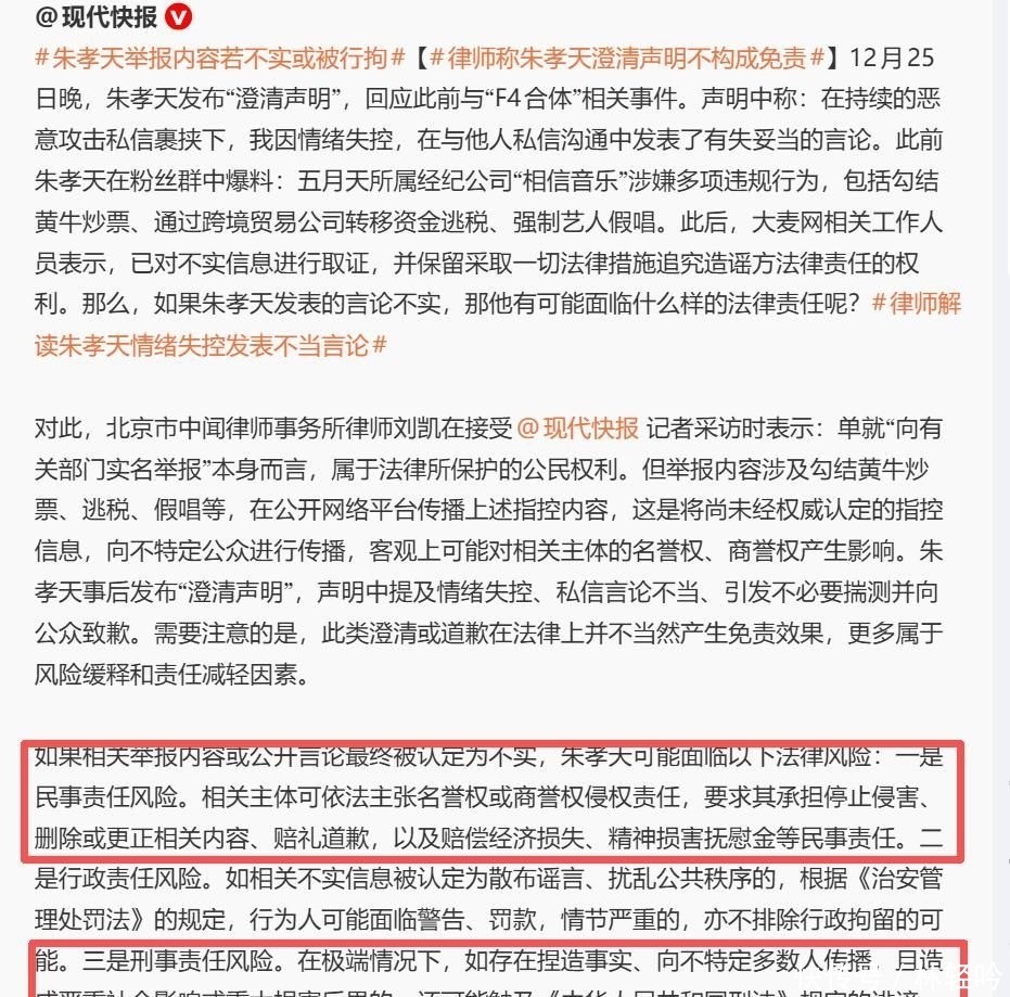 换言之,一朝查实其举报实质无实据撑持,朱孝天或将面对刑事拘留。