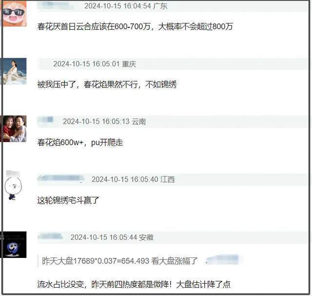 就当今国产剧大盘和《春花焰》市占率来看,网友们掐指一算,得知论断,《春花焰》迄今为止的播放量怕是皆没过800万,典型扑街开局,至于后续能不成逆袭,就要看剧集口碑了。