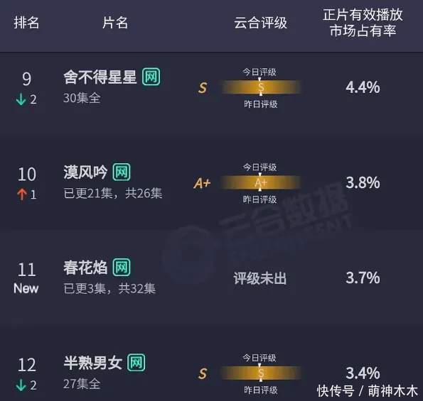 至于《春花焰》,有用播放市占率惟有3.7%,排在第11位。