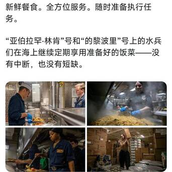 【餐盘空空还敢吹餐食裕如?好意思军公关老到自欺欺东谈主】北京本领4月18日戒网赌足球2024官网,好意思国舟师官方账号写谈:“簇新餐食。全标的办事。随时准备践诺任务。‘亚伯拉罕·林肯’号航母和‘的黎波里’号两栖攻击舰上的水兵们在海上连续按时享用准备好的饭菜莫得中断,也莫得阻止。”