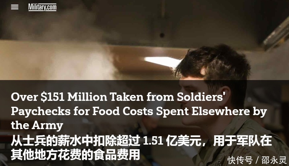 简而言之,好意思国陆军每月齐会向下层士兵披发一笔460好意思元的“基本生涯津贴”(BAS),但伙食费却要从这笔津贴里扣除——好意思国“军事”网站将这笔钱称为“好意思国陆军对士兵征收的税款”。